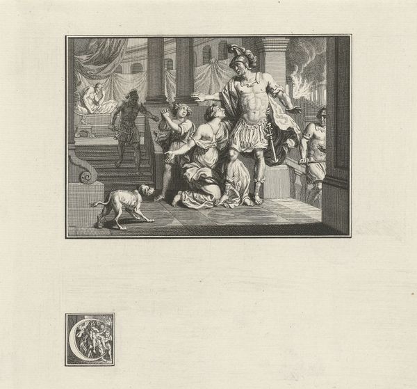 Bernard Picart created this print titled "Salomo op zijn troon" sometime between 1683 and 1733. During Picart’s lifetime, the Netherlands was a vibrant center of intellectual exchange, where ideas about religion, philosophy, and governance were hotly debated. The print depicts a scene from the Hebrew Bible of King Solomon enthroned, rendering his judgment. Two women are brought before him, each claiming to be the mother of the same child. Solomon resolves the dispute by ordering the child to be cut in two, so each woman receives half. The true mother cries out in despair and offers to give up her child to save its life, revealing her maternal identity through compassion. Picart invites us to reflect on themes of motherhood, justice, and divine wisdom, central to cultural and religious narratives. His work emphasizes the emotional depth of the biblical story, inviting viewers to contemplate the complexities of human relationships and ethical decision-making.