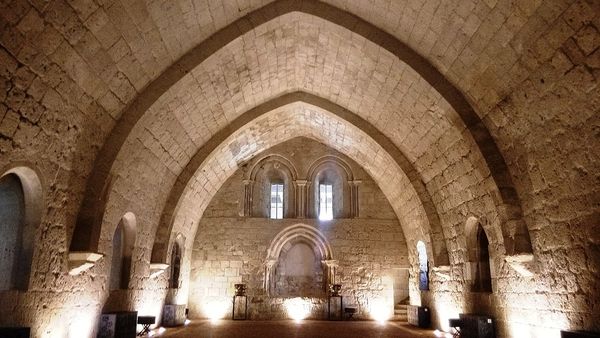 Editor: So this is a view of the Interior of the Church of Saint Anne in Jerusalem. It was built around 1138 and stands as a towering testament to Romanesque architecture. The sheer scale and the way light filters through feels very imposing and serene all at once. What historical weight do you think this interior carries? Curator: Look closely at the arches, rising in layered succession. They mimic not only heavenward aspirations but also the cultural memory embedded within each stone. How might the light, or the *absence* of light, in certain areas contribute to its symbolism? Editor: That's interesting. The darker corners certainly feel like places of introspection or even secrets, while the illuminated areas around the cross offer something more hopeful. Do you think the use of arches affects this duality? Curator: Precisely! The arch, a repeating motif, becomes a vessel carrying meaning across generations. Consider the psychology of the arch, both protective and expansive; its omnipresence emphasizes a continuous, inherited faith, linking present worshipers to countless generations. How do *you* feel the linear emphasis shapes your experience in the space? Editor: I guess I feel like I'm part of something much bigger. It almost makes you feel insignificant, yet connected. Curator: Indeed, and this powerful dichotomy— insignificance within immense history—is intentional. The artists embedded complex emotions, and memories, hoping they would surface hundreds of years later. Editor: Wow, I never thought about architectural space holding so much psychological meaning! Curator: Architecture speaks. Today, think about the ways modern architecture borrows, reimagines, or even rejects such loaded symbols. Thanks for considering those reverberations!