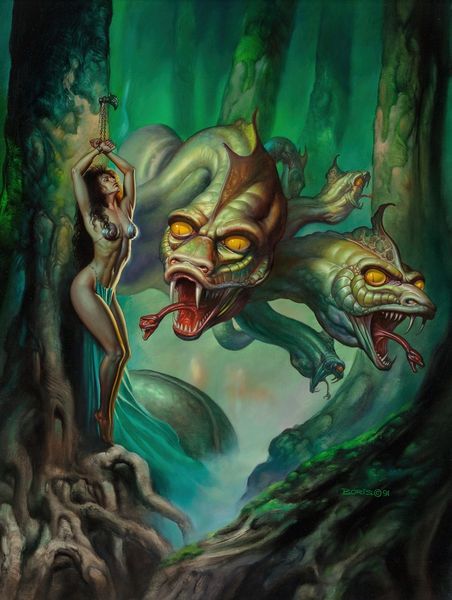 Don Ivan Punchatz created the artwork for the book cover, Ghostly Tales of Terror, using dynamic composition and vivid contrasts. The scene is dominated by a spectral figure and a black cat against a graveyard backdrop. The artist uses light and shadow to intensify the supernatural elements, evoking an atmosphere of fear and unease. The structural arrangement of the artwork, with the ghost and cat lunging forward, employs a diagonal thrust that destabilizes the traditional, static portrayal of horror. This visual device serves not merely as a compositional tool but as a semiotic strategy to evoke the uncanny. Punchatz's choice to use this image invites us to consider how our interpretations of the macabre are constructed through visual codes. The tension between the ghostly figure and the terrified cat reflects a broader philosophical question about the nature of fear and the uncanny. By breaking down the formal expectations within the horror genre, Punchatz challenges us to examine the deeper structures of our own emotional responses and interpretive processes.