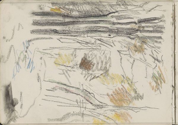Curator: Right, let's dive into this one. Here we have Cy Twombly's "Sunset" from 1957. It's ink and charcoal on paper. Editor: My first thought? It feels incredibly vulnerable. All those scratchy, pale marks on the white...almost like whispers on the verge of disappearing. Curator: That’s interesting. When I look at it, I see a real rawness, like Twombly was trying to capture not just a sunset, but the fleeting feeling of a sunset, you know? That moment of pure emotion. Editor: Definitely, but the emotion feels filtered through a lens of post-war anxiety. This was the late 50s—a period grappling with collective trauma and existential questioning. I wonder if those fragmented lines are somehow mirroring that feeling of societal fragility? Curator: Perhaps. He was definitely plugged into that zeitgeist. I see a connection, too, between those scribbles and graffiti—a kind of primal urge to mark territory, to exist. It almost looks like he's exorcising something onto the page. Editor: Right. And who gets to "own" beauty anyway? Sunsets, often romanticized, can also represent something deeply inequitable depending on where you're standing and who you're standing with, so in my opinion this can relate to colonialism and class divides. Curator: Hmmm, maybe. To me, the calligraphic quality—it's almost like he's writing light, or the echo of light. A love letter perhaps? Albeit a cryptic one. Editor: It could be read as subversive. Calligraphy, historically a practice linked to power and religious text, being intentionally "defaced." I see the dismantling of tradition. Curator: Whatever the interpretation, I find something beautiful and enduring in this chaos. Editor: Yes, even with all its anxieties, I can see a quiet beauty.
