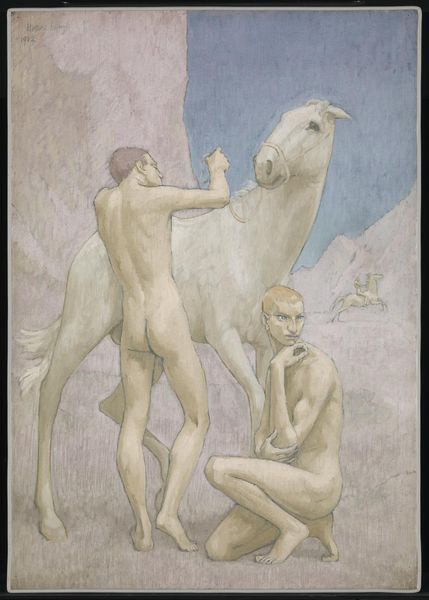Cyprián Majerník painted this circus scene with oil, sometime before 1945, and straight away you can see it's not about precision. It's about the feeling of being at the circus. The paint here is pretty thin, washy even, and the forms are built up with these very gestural strokes. Look at the way the horses are rendered, especially the one in front. It's like Majerník is sketching with paint, quickly capturing the essence of the animal's form. See that dark brown outline on the horse's back? It's not really a line, but more like a shadow that suggests the roundness of the body. And the colours, muted browns and creams, give the whole scene a kind of nostalgic, dreamlike quality. Majerník reminds me a little of someone like Milton Avery, in the way he simplifies forms and uses colour to create a mood. But there's also something uniquely his own here, a kind of raw energy and immediacy that makes this painting so engaging. Art is always about these kinds of conversations, an artist taking something from another and making it their own.