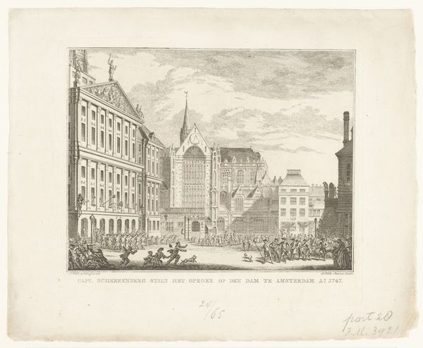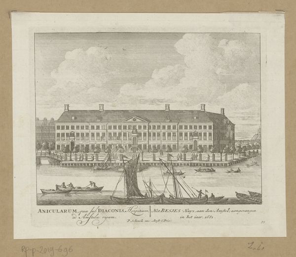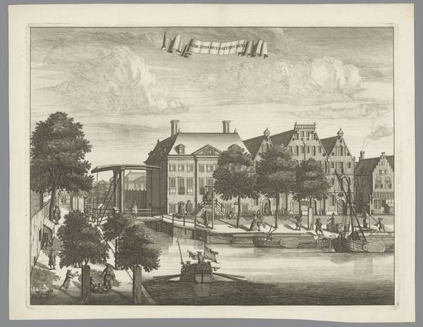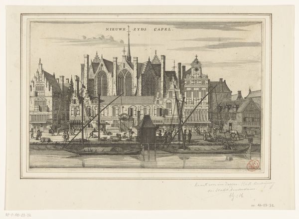 Here we see Coenraet Decker's etching of the VOC Zeemagazijn in Delfshaven, created around the 17th century. The composition is a study in contrasts, where the rigid lines of the warehouse are juxtaposed against the organic forms of the boats and water. The image plays with a structural order that reflects the mercantile precision of the Dutch East India Company. The architectural facade of the warehouse dominates the scene. The building is defined by its structured symmetry, with rows of windows suggesting a rational division of space. This geometric solidity contrasts with the dynamic, less predictable shapes of the sailing vessels docked in front. Note the way Decker uses light and shadow to define form. This interplay isn't just aesthetic. It reflects a broader cultural tension between the controlled, man-made environment and the unpredictable forces of nature, which were particularly relevant to the seafaring Dutch society. Ultimately, Decker’s strategic use of form offers us a glimpse into the complex relationship between commerce, control, and the natural world during the Dutch Golden Age.