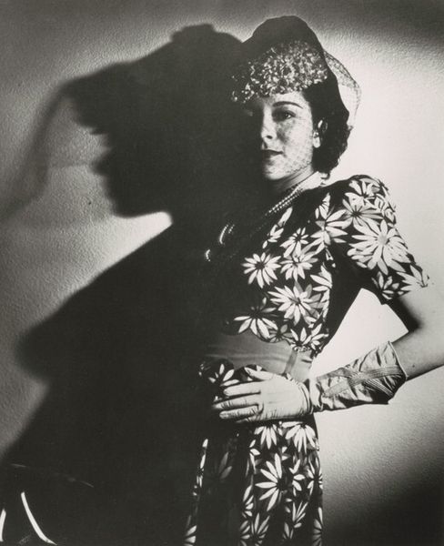 Editor: So, this is Valie Export's "Identity Transfer 2" from the Tate. The slick jacket and those chunky necklaces give it a tough yet glamorous vibe. What do you make of it? Curator: I see a fascinating exploration of performance and persona. Export often used her own body as a site for artistic intervention. The jacket and jewelry, almost like armour, hint at constructed identities, questioning authenticity. Is she revealing or concealing? What do you think the title suggests? Editor: Maybe how we try on different versions of ourselves? It feels very relevant, even now. Curator: Absolutely. Export prompts us to consider the fluid, often precarious nature of identity in a media-saturated world. Perhaps we all perform identity. Editor: I never thought about it like that before. It's really thought-provoking. Curator: Art should challenge us.