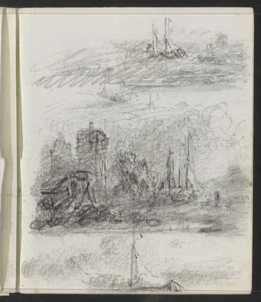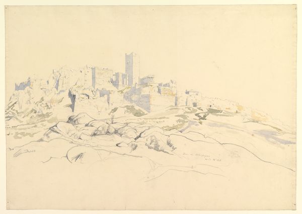 Curator: Here we have Joseph Pennell's etching, "New York from Brooklyn," created around 1910. It’s a fascinating piece. Editor: My initial feeling is of transience, like a memory fading. The wispy lines give the skyline an almost ethereal quality. Curator: Pennell was deeply interested in capturing the dynamism of modern cities. Look at how he uses the etching technique, those delicate lines, to convey not just the physical form but also the atmospheric conditions. Editor: Yes, the smoke, or is it fog, almost merges with the buildings. I see so many layers of meaning: aspiration, industry, but also fragility. Early twentieth-century skyscrapers were more than buildings. They symbolized an awakening power, like Egyptian obelisks once did. Curator: Precisely, he's not just documenting a cityscape, but interpreting its symbolic weight. The vantage point, from Brooklyn, provides a specific social perspective, a gazing towards Manhattan’s promise, but also detachment. Editor: It's like seeing the Emerald City, from a less gilded road. Etching too... the medium is so intimate and detailed, demanding closer inspection. Perhaps Pennell hoped viewers would meditate on what they projected onto it. It feels less definitive, more open than photography ever could. Curator: Definitely more interpretive. And considering when this was made, just as the skyscraper craze was kicking off, that sense of the "modern" must have been intense. You get it here--progress mingling with doubt. Editor: A beautiful observation, really. Pennell used these familiar geometric cityscapes, not as celebration, but maybe meditation. A poignant glimpse of past anxieties over tomorrow.