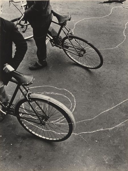 Robert Frank made this gelatin silver print, titled "Park--Indianapolis", at an undetermined date. The photograph presents a complex view of public space and social division. A Black man sits on a bench in the foreground, his back to us, with the word "Mad" emblazoned on his jacket. In the background, white figures populate the park. A man on a bicycle in a suit divides the image in two. Frank, as a Swiss immigrant, brought a critical outsider's eye to American society. His work often touched on issues of race, class, and alienation that mainstream culture preferred to ignore. The composition of this photograph raises questions about who has access to public space and the emotional state of the man. Is "Mad" a personal statement, or a commentary on the world around him? To understand Frank's work fully, we might consult his contact sheets and working notes, as well as the broader history of social documentary photography and the Civil Rights Movement. The meaning of any work of art is always contingent on its historical and social context.