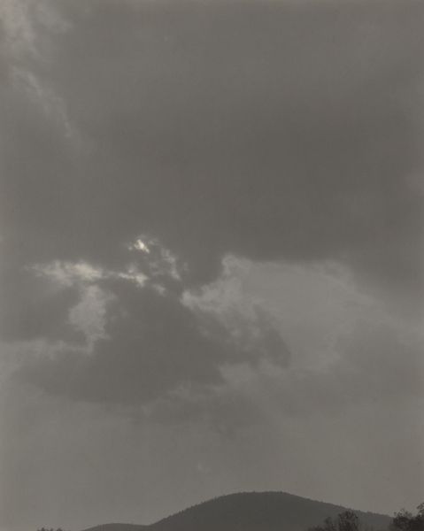 Alfred Stieglitz made this gelatin silver print, "Music—A Sequence of Ten Cloud Photographs, No. IV," at an unknown date, but certainly in the early 20th century. Look at how the tones shift and blend. It is almost like he is painting with light, or perhaps more accurately, shadow. The texture is smooth, almost velvety, which draws you into the muted and mysterious scene. At the bottom, a soft band of trees or hills meets the dramatic sky, which is filled with swirling clouds that seem to be alive. Above the distant peak, the sun or moon, veiled by cloud, creates a focal point. It’s like a single, pure note in a complex chord. The way the light filters through, it feels like a quiet, powerful emotion. Stieglitz called these photographs ‘equivalents’ as if the forms in nature could stand in for inner states. It’s a little like the work of Georgia O’Keefe, another artist who found endless inspiration in the world around her. Like music, this photograph doesn’t tell you what to feel, but invites you to feel deeply.