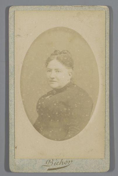 This mounted photograph captures Maartje Haan, maybe sometime in the late 19th century. There's a stark simplicity to it, almost like a drawing with light. Look at how the dark fabric of her dress merges into the shadows, setting off her face. The tones are limited, muted, and the texture seems smooth, almost velvety. I'm interested in the way the dress feels both flat and richly detailed at the same time. Maybe it’s the way the light glances off the ruffles at her neck, catching the small white brooch. That tiny point of brightness seems to carry the weight of her presence in the frame. There's a stillness and a formality to the image, which brings to mind the work of early portrait photographers like Julia Margaret Cameron, who were also figuring out how to capture something of a person’s soul through this new medium. It's a reminder that every portrait, whether painted or photographed, is a conversation between the artist, the subject, and time itself.