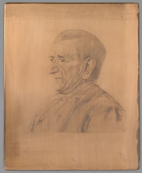 Jan Veth rendered this portrait of Jan Schaap using etching, a printmaking technique, sometime in the late 19th or early 20th century. Veth was a man of letters, deeply engaged in the cultural and political life of the Netherlands, and this portrait reflects the mood of his time. Notice the stark realism, which captures Schaap's aging features. The lines etched into the plate convey a sense of character etched by time and experience. This raw portrayal moves away from idealized representations, reflecting a broader trend in art toward depicting subjects with unflinching honesty. Think about the decision to portray Schaap in profile. Is he presented as a public figure, or does the angle suggest a more intimate, reflective mood? The use of etching, with its fine lines and tonal variations, adds to the sense of delicate contemplation. The portrait invites us to consider the lives of ordinary people and the beauty found in the passage of time.