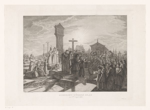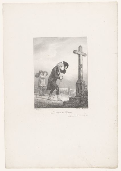 Editor: This is Giovanni Domenico Tiepolo's etching, "Christ is Helped by Simon of Cyrene," from around 1748. It’s a delicate print on paper depicting a really brutal moment. The body language of Jesus is heartbreakingly fragile. What readings do you find most compelling in this piece? Curator: Thank you. Seeing this image, I'm struck by how Tiepolo uses a biblical scene to reflect the injustices prevalent in 18th-century Venetian society and globally. Consider Simon of Cyrene, compelled to assist Jesus. His forced aid speaks volumes about power structures, doesn’t it? This was a period marked by stark social inequalities. Editor: That's a powerful perspective, the compulsory nature of Simon’s help. It challenges this idea of inherent goodness we’re conditioned to associate with acts of charity, and replaces it with something imposed by a corrupt society. Curator: Exactly. Consider also how the imagery itself perpetuates certain dominant narratives. Where are the voices of the marginalized within the composition? The act of image-making, in and of itself, is not a neutral undertaking. Are the stories of all fairly represented, or are some purposefully being silenced or amplified? Editor: I see your point. I was initially focused on the individual suffering of Christ, but now I recognize how that directs my attention away from a broader understanding of societal dynamics. This has implications even today regarding image creation. Curator: Precisely! Understanding these dynamics historically allows us to be more critical of contemporary representations and narratives. The past always informs the present, and as such allows us to push for a more just future. Editor: Thank you! This lens really opens up so much more in the image and, more broadly, in history itself.