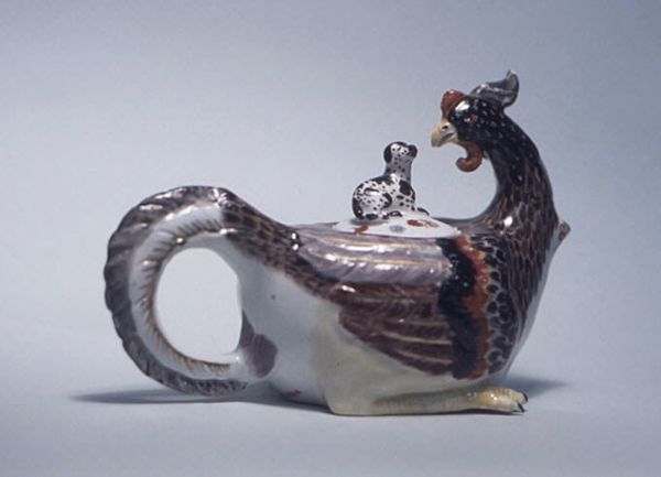 This anonymous wine ewer lives at the Minneapolis Institute of Art, and whoever made it, made it out of clay. I am struck by how the maker lets the medium be itself. The clay is formed and fired, but the artist isn't trying to hide the process. Glazes run and pool, like the mottled red patch on the vessel's belly. There's a real sense of play, especially in the spout and handle which are both shaped like dragon heads. Their mouths are open, ready to spout wine – or maybe just make conversation. It's as if the artist is in conversation with the material, discovering the form as they work. You see this in the base, where the pale glaze swirls like water, and even in the striations of dark brown that run down one side. I think of the work of Lucio Fontana when I look at this, though he was making holes in his canvases, rather than shaping clay. Both seem to relish the act of creation, embracing the beauty of imperfection and the potential for art to surprise us.