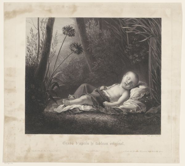 Editor: We are looking at Pierre Simon's engraving, "The Burial of Atala," likely created between 1779 and 1820. The Romanticism of this landscape contrasts against the sharp focus of the figures, and the whole intaglio feels very balanced in terms of light and dark. What do you see in the piece? Curator: I'm intrigued by the stark dichotomy presented in the image. The landscape serves less as a backdrop and more as a stage. Observe how the cave’s entrance frames a Romantic landscape of trees and graves beyond. Simon directs our gaze through carefully arranged pictorial space; dark foreground contrasting against bright background. Note the expert manipulation of light. What appears spontaneous and atmospheric belies the structural underpinnings. Editor: So, it's almost as if the outside is balanced with the inner scene through light and composition? Curator: Precisely. The subjects – Atala, her lover, and the priest – exist within a structured composition, note their arrangement as they direct the eye, rather than pure emotional expression. Their positioning, along with the formal balance between light and dark, contributes to the overall narrative effect within the medium of intaglio. It calls into question whether this is about the figures and subject, or if it’s a demonstration of an artistic problem well resolved. Editor: I'm beginning to see it in that light, the scene becomes almost a problem that he has solved through line and space. Curator: It highlights the engraving as an exercise in aesthetic arrangement, using the figures merely as compositional tools. The artwork becomes about formal control over emotional chaos, and challenges how we approach art-historical narrative. Editor: Thanks! I will consider how technical and structural elements may come together when thinking about art moving forward.