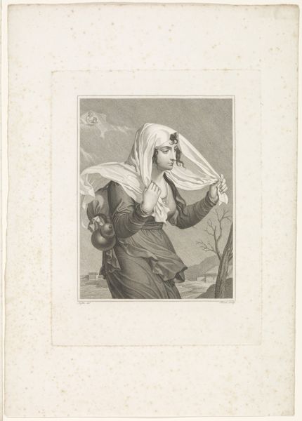 Enea Vico created this print, Flandrens, in the mid-16th century using etching and engraving. It is an image that immediately prompts questions of identity and representation. The figure, presumably a person from Flanders, is entirely concealed under a draped cloth, obscuring any individual features. What does it mean to represent someone by hiding them? This anonymity invites us to consider the complexities of cultural and regional identity during a time of significant political and religious upheaval in Europe. Was Vico making a comment about cultural stereotypes? Is it a statement about the way identities can be imposed or concealed? The fur trim is a clear marker of status, and while the figure is hidden, the sumptuousness of their dress speaks volumes. The emotional impact of the image lies in this tension between concealment and display, absence and presence, forcing us to contemplate the visible and invisible aspects of identity.
