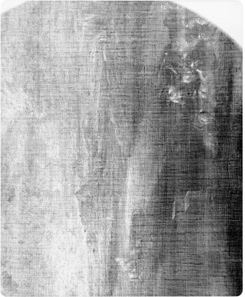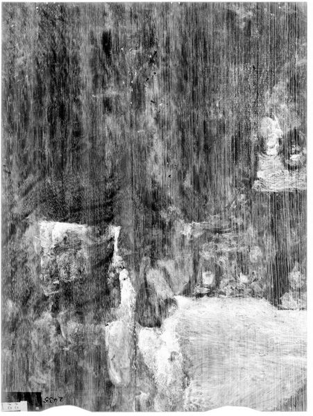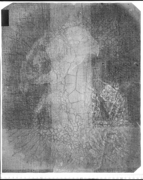 Editor: This is an X-radiograph of "Virgin of the Crescent", by an anonymous artist, at the Harvard Art Museums. The image appears ghostly and reveals layers beneath the surface. What visual symbols jump out at you? Curator: Notice how the crescent moon at her feet isn't just a detail; it's an ancient symbol, linking her to lunar goddesses. Think about what that layering of pagan and Christian imagery might signify for the cultural memory. Editor: So, it’s not just a religious symbol? Curator: Exactly. It’s about the ongoing negotiation between different belief systems, isn't it? A visual palimpsest revealing layers of meaning over time. Editor: That’s fascinating; I'll definitely consider that layering of meaning. Curator: It encourages us to question what we see on the surface and delve into the rich history of symbols.