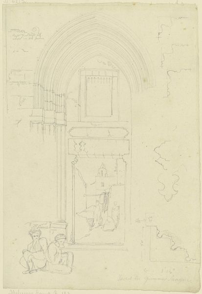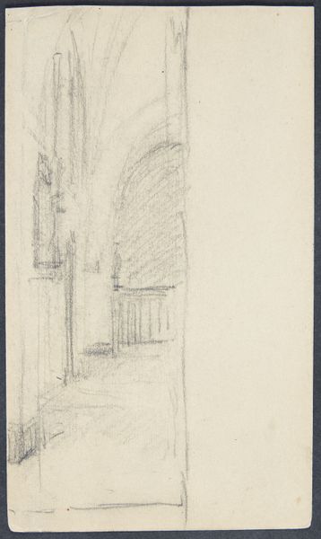 Karl Ballenberger made this sketch of a round-arched passage with graphite on paper sometime in the first half of the 19th century. The quality of a graphite drawing resides less in its material value and more in the skill required to wield it. Here, the artist has used graphite to render different textures and create a sense of depth, especially in the receding archways. The marks vary in pressure to suggest form and light, using a traditional drawing technique known as hatching. The architectural elements of the passage itself also speak to labor and social context. The brickwork and stone floors suggest a time-consuming manual process, where each piece had to be carefully placed and fitted. This kind of architectural rendering requires the skilled hand of a draughtsman, and is as much about the social history of labor as it is about the artist's individual vision. By focusing on the materials, making, and social context of both the drawing and the architecture it depicts, we can fully appreciate the significance of this artwork, blurring the lines between fine art, craft, and social history.