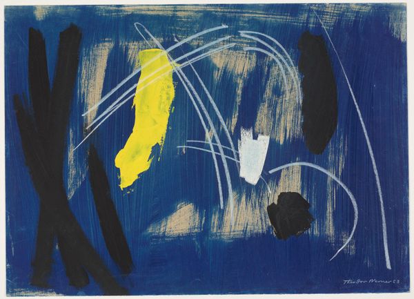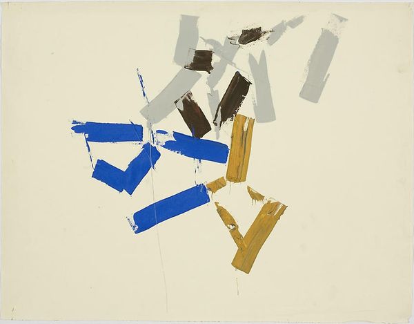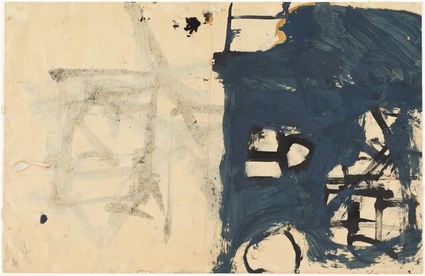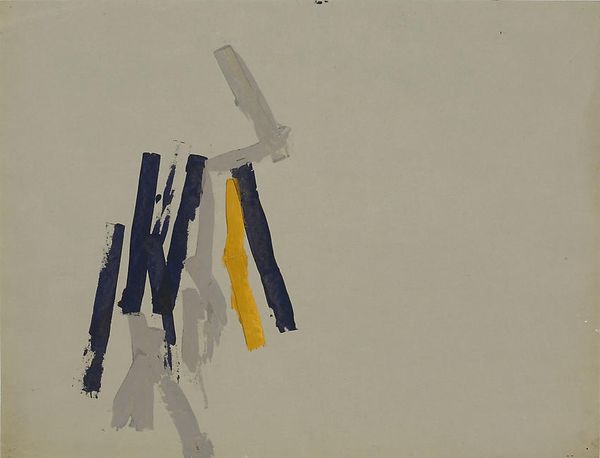 This painting is Untitled, by Charlotte Posenenske, and we don’t have a date for it, but it’s all about the push and pull of marks against the stark, neutral ground. The simple palette feels so direct. The blues and greys, applied in these decisive strokes, they aren’t trying to hide anything. You can see the edges of the brushstrokes, the way the paint’s been dragged across the surface. There’s this beautiful clarity in how the painting is constructed, almost like a blueprint or a diagram. Look at the cluster of blue and black marks on the right. See how they almost lock together, like pieces of a puzzle? Each mark feels like a decision, a step in a process that’s both controlled and intuitive. Posenenske abandoned artmaking to focus on sociological studies, a decision that chimes with the radical spirit of artists like Blinky Palermo, who also explored the boundaries between painting and the everyday world. In the end, it’s about art as an ongoing conversation, a space for open-ended inquiry rather than fixed answers.