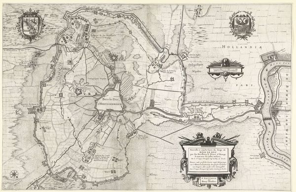 This map, depicting Frederik Hendrik's siege of Den Bosch, was created in 1629 by an anonymous artist using engraving. This is an intaglio printmaking technique where an image is incised into a metal plate, often copper. Ink is then applied and the surface wiped clean, leaving ink only in the incised lines, before being pressed onto paper. The sharp, precise lines of the engraving beautifully capture the details of the siege. The act of engraving itself is laborious, requiring a high degree of skill, patience and control. It is a process that demands precision, similar to the planning and execution of a military siege. In 17th-century Netherlands, mapmaking was a booming industry, fueled by trade and military conflict. The production of these maps involved collaboration between artists, surveyors, and publishers. The resulting maps were not just tools for navigation or military strategy, but also commodities, reflecting the political power and economic interests of the Dutch Republic. Appreciating the material and process is crucial to understanding its full meaning.