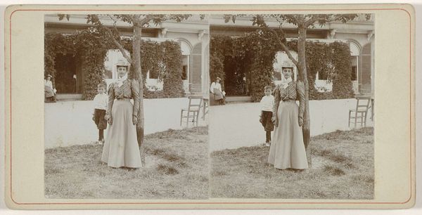 Editor: Here we have "Portrait of a Woman in a Chair and Boy in Sailor Suit," taken in 1899 by Geldolph Adriaan Kessler. It's a photograph, giving us a glimpse into what feels like a very staged moment in time. What do you see when you look at it? Curator: Well, considering photography in 1899, we should focus on the process itself. The labor involved in creating this image – the lengthy exposure times, the developing process – reveals a conscious effort to produce a lasting family record. The stiff poses and carefully chosen attire speak volumes about the societal values of the time, don’t you think? Editor: Absolutely. The boy's sailor suit and the woman’s attire definitely speak to that. What else stands out regarding social values? Curator: Let's look closer at the background, the setting itself. It’s a deliberate display of bourgeois leisure, suggesting a certain economic standing and the ability to control one’s environment. Even the chair seems purposefully positioned. Who owned these objects? Where were they made? How did the materials become accessible? These details connect us to the modes of production, labor, and the culture of consumption at that time. Editor: That makes so much sense. Considering photography's relatively new availability, capturing the material markers of status becomes a tangible demonstration of wealth. I hadn’t considered that. Curator: Precisely! Photography served as a tool for constructing and disseminating aspirational identities tied to material possessions. Editor: Seeing it as an active process changes my perception entirely! I initially just saw a simple portrait. Thanks! Curator: My pleasure. It’s all about looking beneath the surface to uncover the material realities that shape our understanding.