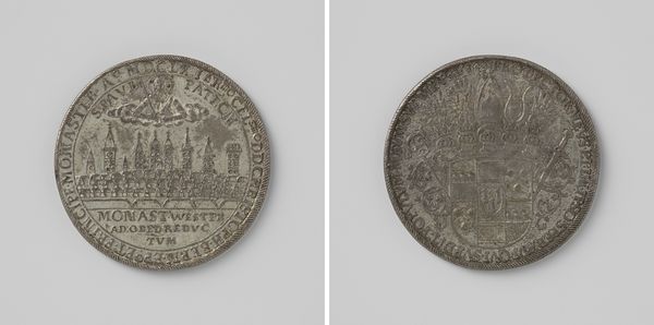 This commemorative medal, crafted by an anonymous artist, marks the fiftieth anniversary of the Battle of Waterloo. The medal's circular form invites a structural reading of its divided space. On one side, heraldic symbols are encircled by text, creating a layered composition that speaks to national identity and historical narrative. The relief is shallow, and the material texture introduces a tactile dimension, inviting close inspection and a sensory experience of history. Turning to the reverse, a neoclassical monument dominates, flanked by flags and military accoutrements. The arrangement presents a constructed vision of victory and remembrance. The inscription 'WATERLOO' curves above, framing the scene and reinforcing its significance. The dates 1815 and 1865 anchor the event within a temporal structure, signifying both the battle and its commemoration. In its totality, the medal functions as a signifier of power, memory, and national pride. Its form and imagery are not merely representational, but constitute a symbolic language encoding cultural values. This small object encapsulates a complex interplay of history, representation, and material presence.