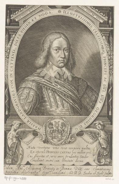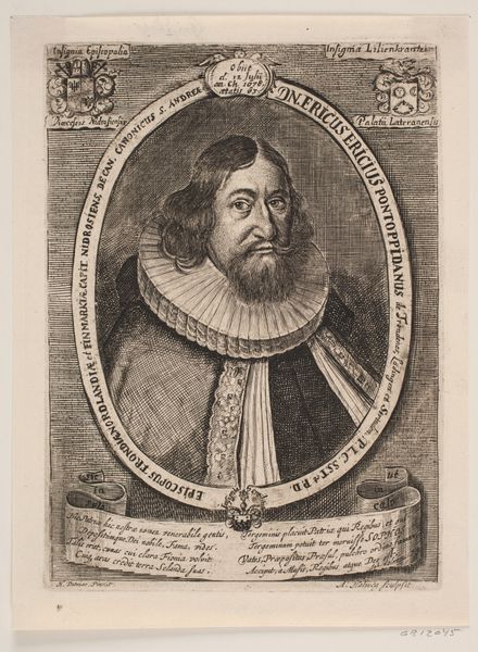 This is Wilhelm Schwan's portrait of Martin Gosky, created as an engraving sometime in the mid-17th century. The portrait presents us with not just an image but a declaration of status and identity during a period of significant social stratification. Consider the weight of representation here. Gosky is framed by his titles—"Archiater," "D.D.," a doctor of medicine—each word carefully chosen to construct a public persona of authority and intellect. Yet, the intimate details of his gaze and the subtle rendering of his features hint at the individual beneath the accolades. The Latin inscription below, a testament to Gosky's healing abilities, elevates him almost to the status of a mythic healer. Schwan's work operates within a very specific visual language, one that carefully balances the personal and the public, the individual and the societal role. These portraits reinforced the sitter's position within a rigid social hierarchy, but they also provided a space for the quiet expression of individual character and identity.