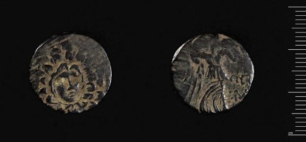 Editor: Here we have a silver coin of Mithradates VI, from Amisos in Pontos. It’s small, quite worn, and yet, there's something regal about it. What do you see in this tiny window into the past? Curator: Oh, this coin whispers stories, doesn’t it? Look at the deliberate placement of imagery, and it feels more like a carefully curated portrait than mere currency. The Gorgon’s head, a symbol of protection, juxtaposed with the eagle, representing power. What a clever way to scream, "I’m here, I’m in charge, and I’m not to be messed with!" It’s almost humorous, isn’t it, this miniature declaration of dominance? Editor: It really does feel like a personal statement, shrunk down and distributed. Curator: Exactly! Power in your pocket, quite literally. I find it refreshing when art can make you chuckle while simultaneously imparting a bit of historical insight.