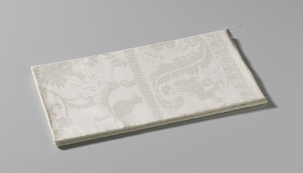 Editor: So, here we have an anonymous piece from after 1686, titled "Tafellaken met de verovering van Boedapest door Leopold I, keizer van Duitsland"—that's "Tablecloth with the Conquest of Budapest by Leopold I, Emperor of Germany." It's a textile, currently residing in the Rijksmuseum. It has this interesting faded, almost ghostly quality to it. What are your initial thoughts on this textile? Curator: Ghostly is a lovely way to put it! It evokes such an interesting contrast, doesn’t it? A celebration of military conquest rendered in the soft, domestic medium of a tablecloth. Think about that tension for a moment. This isn't a heroic painting in oil; it’s a design meant to be laid out for a meal, perhaps even a celebratory feast after the victory. Imagine the conversations that unfolded around this very textile! Who do you think was at that table? Editor: Wow, I didn’t think of it that way! Maybe high-ranking officials? It feels almost subversive to depict something so grand on something so everyday. It makes you wonder about the intent behind its creation. Was it glorifying the event or just documenting it? Curator: That subversion is key, I think. History, particularly the Baroque era, loved its propaganda, but here, the message is softened, domesticated. There’s also a chance the artist/designer wasn’t making a political statement, that creating and owning this showed class status, supporting this military event through household décor. The faded quality speaks to time’s passage, doesn't it? Have our opinions changed as a culture when considering war now? Editor: Definitely! It’s incredible how a simple tablecloth can hold so much historical and cultural weight, reflecting on attitudes toward conflict. Curator: Exactly. It’s a quiet, almost unassuming piece that invites us to ponder the complexities of power, history, and the subtle ways they infiltrate our daily lives. Editor: I’ll definitely be thinking about tablecloths in a whole new light now. Thanks for sharing your insight. Curator: My pleasure! And perhaps next time, we’ll ponder the hidden meanings in napkin designs.