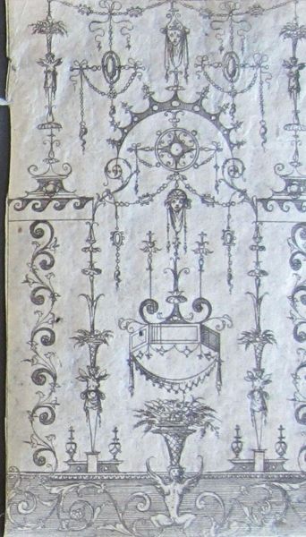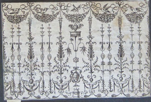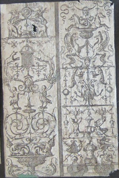 Editor: This is *Grotesque with Bands of Repeating Elements, Including Two Friezes with Swans at the Lowest Level* by Jacques Androuet Du Cerceau. It's a small print. What strikes me is the sheer density of imagery! What can you tell me about its historical context? Curator: Du Cerceau was instrumental in popularizing the grotesque style. Consider how these prints functioned: circulating design ideas, shaping taste, and demonstrating princely power through ornamental excess. Editor: So, it's about power? Curator: Precisely. These images weren’t just decorative; they communicated status and cultural aspirations. The grotesque became a visual language of the elite. Editor: It's fascinating to think about the politics embedded in something that seems purely ornamental. Curator: Indeed, the public role of art is always intertwined with the socio-political forces of its time.