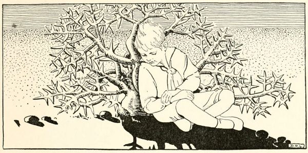 Editor: This is Dorothy Lathrop's "A Little Boy Lost," created around 1920, using ink and pen in a beautiful drawing. There is such stillness to it; a quiet tenderness almost frozen in time. What do you see in this piece? Curator: Beyond its obvious tenderness, I see a work steeped in the socio-political anxieties of the early 20th century, particularly concerning childhood and innocence. Lathrop's use of symbolism and stylized figures—think of the mother's long hair—draws on older Pre-Raphaelite depictions of women as ethereal and untouchable, but it intersects with contemporary discourse around children's rights. Editor: That’s interesting. So, the symbolism goes beyond just a mother and child? Curator: Absolutely. Consider the title itself: "A Little Boy Lost." Lost to what? Perhaps the traumas of World War I, the societal shifts impacting family structures. Lathrop, as a female artist, is implicitly commenting on patriarchal systems that endangered both women and children, systems that demanded certain kinds of labor. Note also how they are set apart within the space of nature; how might you interpret that decision? Editor: Perhaps a sort of idyllic but ultimately vulnerable isolation? A commentary on the precarity of childhood, removed from but also threatened by society? Curator: Precisely. The seemingly tranquil image belies a deeper interrogation of power dynamics and societal responsibility. Think, for instance, about how maternal bonds and safety nets become political statements, even acts of resistance. Editor: I had never considered that angle, that the gentleness itself could be a political statement. Thank you! Curator: And thank you for noticing this powerful visual statement on social precarity of family relations.