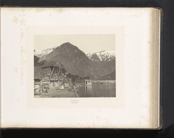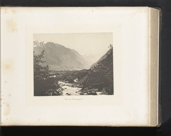 Editor: We're looking at "Gezicht op Stahlheim en Nærødalen," a photographic print from before 1893 by Paul Lange. It’s got this haunting, romantic feel to it, with the buildings nestled in this incredibly imposing landscape. What do you make of it? Curator: Oh, that quiet drama just grabs you, doesn't it? The albumen print process lends a softness, an almost dreamlike quality, contrasting with the sheer, unyielding scale of those mountains. I’m wondering about Lange’s choice to frame it this way… it’s as if he's saying, "Look how we, humanity, perch on the edge of immensity." Editor: I hadn't considered that, the contrast between human and nature... Do you think there’s any symbolism in the arrangement of the buildings? Curator: Possibly. Notice how the village appears almost barricaded against the encroaching valley. Perhaps a metaphor for our constant negotiation with nature’s power? Lange's personal anxieties perhaps bleed through; it prompts me to wonder if he viewed progress as a fragile thing. Do you get that feeling as well? Editor: I definitely see a sense of fragility now that you point it out. Curator: Right? It’s less a celebration of landscape, and more an exploration of existence. How interesting to me that it’s not a straightforward documentation, but an intensely subjective lens on the world. Editor: So much to consider, I feel I can spend hours in front of this image! Thank you for offering new ways to look at this albumen print. Curator: My pleasure. And remember, art's like a looking glass. Every time we revisit, we glean something fresh, something that might say more about *us* than the artwork itself!