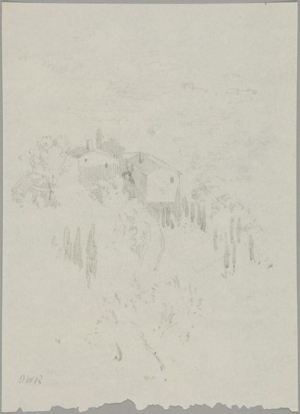 Curator: This delicate pencil drawing is titled "El Qantara, Tunisia," by Denman Waldo Ross. Editor: It feels like a memory, a half-formed landscape emerging from the subconscious. Curator: Ross, an early 20th-century American artist, clearly aimed to capture the essence of this Tunisian locale, perhaps as part of a larger colonial aesthetic. Editor: Yes, and look at how the sketch captures the starkness and quiet of a North African scene. The bridge or aqueduct, "El Qantara," becomes a symbol of connection across vastness. Curator: It's interesting how Ross, an art collector and educator, perceived and then presented this location to a Western audience. Editor: Those palm fronds, rendered so simply, evoke the exotic and timeless quality that North Africa held in the Western imagination. A potent symbol, indeed. Curator: A glimpse into a specific artist's engagement with a place and time. Editor: A fleeting but evocative impression, leaving much to the imagination, and therefore lingering in memory.