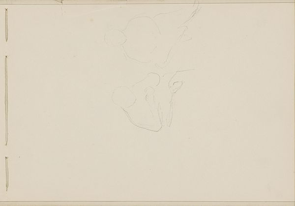 Curator: Isaac Israels' "Abklatsch van de krijttekening op blad 24 verso," a drawing made sometime between 1875 and 1934. I understand that translates to "rubbing of the chalk drawing on page 24 verso." A ghostly trace indeed! Editor: Ghostly is right! My initial thought is that it is delicate to the point of disappearing. Almost like a memory fading. Curator: It's incredibly minimal. Israels used graphite and pencil, creating a shadowy impression of figures that might almost be obscured completely by the blank space. We can almost see the labor in that smudging. Editor: I am seeing process over product, definitely. Think about the way the act of rubbing transfers an image – it’s inherently reproductive, taking something existing and re-presenting it. What’s more valuable here – the original chalk drawing or its double? Or just the labor? Curator: Exactly! It feels vulnerable, as though the process itself, the physical act of creating this image, is just as significant as any intended final product. The labor is plain. Did he mean to share all of this, or would he want to hide it, if given the chance? Editor: I like that vulnerability. There is also a rawness to it – we see the literal imprint of something else, but the paper shows so little impact. Almost like Israels asks what marks something. Curator: He's capturing form itself, as ephemeral and fleeting as it can be. Consider how impressionism focuses on light. Is this the light reflecting on the bodies? We almost lose track of their forms and melt with it. Editor: I find myself considering the social implications, the everydayness of "form" transformed into the hallowed space of "art". How labor manifests as an impression. Curator: Thinking of it in that way... Yes, "Abklatsch" isn't just about portraying figures; it's capturing their existence as well, and that existence's relationship to both space and time, and the materiality that keeps them together, literally. Editor: So well said. What began as a delicate sketch really opened to a contemplation of materials and the reproduction of work.