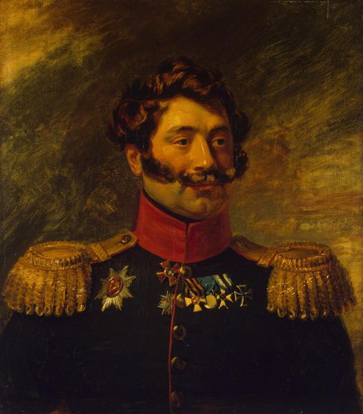 George Dawe painted this portrait of Illarion V. Vasilchikov, using oil on canvas. Portraits such as this, served as a vital form of preserving one's legacy and status within a society deeply stratified by class and nobility. Vasilchikov, adorned in his elaborate military attire, is presented as a figure of power and authority. Medals and embellishments speak volumes about his achievements and position within the Russian Imperial Army. However, beyond the symbols of power, there's a subtle hint of vulnerability in Vasilchikov's gaze, a suggestion of the personal sacrifices that often accompany public service and military life. Dawe was commissioned to paint portraits of Russian generals who had served against Napoleon in 1812. How much do these portraits memorialize individual identities, and how much do they serve as propaganda? This portrait then, goes beyond mere representation, inviting us to reflect on the complex interplay between personal identity and historical narrative.
