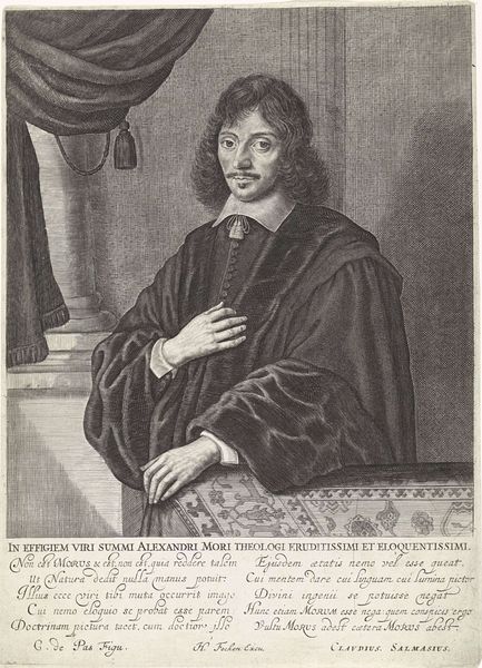 Theodor Matham’s “Portret van Joost van den Vondel,” now at the Rijksmuseum, is an engraving that captures the essence of its subject through meticulous detail. The composition emphasizes Vondel's face and hands, drawing us into his contemplative state. The use of line is striking; notice how closely packed fine lines create tonal variation, giving form and volume to Vondel's figure and clothing. The textural contrasts—the smooth skin against the intricately patterned fabric—invite a visual exploration of materiality. These elements work together to construct meaning, not just representing Vondel, but also embodying a sense of intellectual weight and artistic dedication. This portrait can be understood within a broader cultural context, where the representation of individuals was closely tied to ideas of status and identity. Matham’s technique reflects a desire to capture not just likeness but also the inner character of Vondel, prompting a deeper engagement with the subject’s persona. Ultimately, it invites us to consider how form and content converge to shape our understanding.