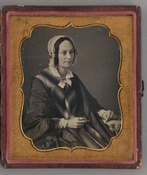 This daguerreotype, made by W. & F. Langenheim, depicts Mrs. Thomas Ustick Walter with her deceased child. In the Victorian era, death was a common part of life, and post-mortem photography emerged as a way to memorialize the deceased, especially infants. This image reflects the cultural practices surrounding mourning and remembrance in 19th-century America. The mother's somber expression and the child's still form speak to the emotional toll of infant mortality, a frequent tragedy in this period. Photography studios emerged as important institutions, democratizing portraiture and creating new visual codes for representing life and death. This daguerreotype, housed in a decorative case, would have been a treasured object, kept as a private memento within the family. To further understand this image, we might look to death and mourning rituals of the time through sources like journals, letters, and other visual and material culture, revealing how families coped with loss and constructed lasting memories.