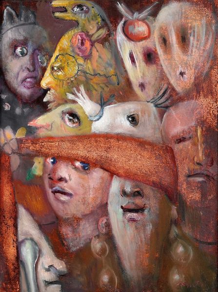 Jules Perahim created this enigmatic painting, Cabaret, with oil on cardboard, presenting a theatrical scene of ghostly figures. The sombre palette, dominated by browns, blacks, and muted reds, evokes a sense of melancholic reverie. The composition is densely packed, with faces emerging from the shadows, each seemingly lost in their own world. Perahim masterfully uses light and shadow to create a palpable sense of depth. The figures seem to float within the picture plane, challenging conventional notions of perspective. The roughness of the brushstrokes adds to the painting's raw, emotional quality. The figures' indeterminate features and obscured gazes suggest a deeper exploration into the themes of illusion and identity, perhaps reflecting on the fleeting nature of performance and memory. Through its fragmented forms and symbolic undertones, the work embodies the existential anxieties of a society grappling with change, inviting viewers to contemplate the nature of reality and the human condition.