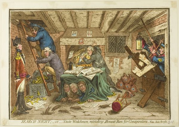 Horace Vernet created this lithograph, plate no. 118 from "Fables choisies de La Fontaine," using a printing process that was still relatively new in the 19th century. Lithography involves drawing with a greasy crayon on a stone or metal plate, then using chemical processes to ensure that the ink adheres only to the drawn areas. The appeal of lithography lay in its relative ease and the way it enabled artists to achieve a painterly effect in print. Looking closely, you can see the subtle gradations and soft textures Vernet achieved, emulating the appearance of a drawing or watercolor. This print, like others in the series, was made to illustrate the fables of La Fontaine, and there is a social element there too. Consider the subject: an old woman and her servants, caught in a moment of domestic drama, as rendered through the then-modern medium of lithography. By focusing on the materials and processes, we can see how Vernet blurred the lines between fine art and popular illustration, all while subtly commenting on the social dynamics of his time.