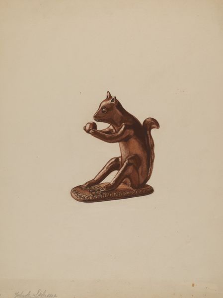 Ernest A. Towers Jr. made this drawing of a 'Possum Pitcher'. It’s so interesting how the light glances off the pitcher's surface. The choice of browns and creams gives it this warm, inviting feeling, like a well-loved object passed down through generations. You know, looking at the brushstrokes, I get the sense of the artist really feeling their way through the process. It’s not just about representation; it's about the act of making. Notice the dark brown paint, how it pools in certain areas, giving depth and weight to the possum’s form. There’s a richness and shine to it that makes you wanna reach out and touch it. And the way the artist has captured the texture of the ceramic! Each mark seems deliberate, contributing to the overall sense of solidity and presence. This piece reminds me a little of some of the folk art pottery I’ve seen, where the artists aren’t necessarily aiming for perfection but capturing the essence of the subject. It’s this blend of observation and imagination that makes it so compelling.