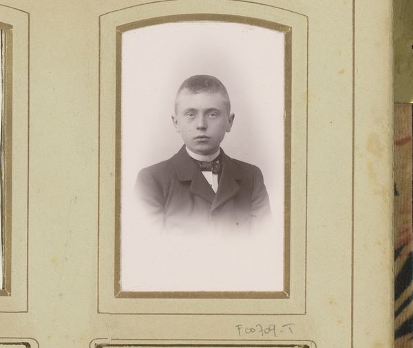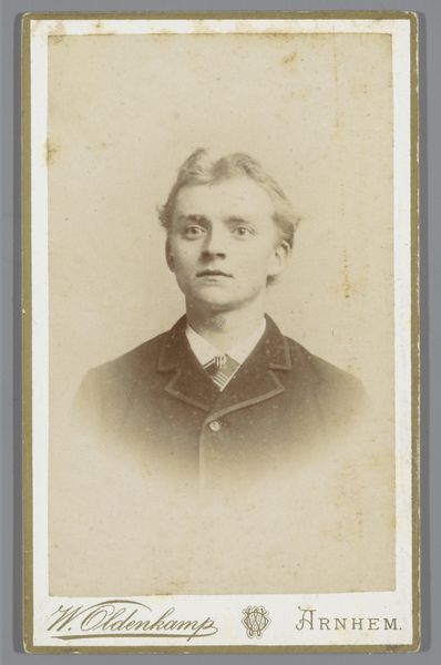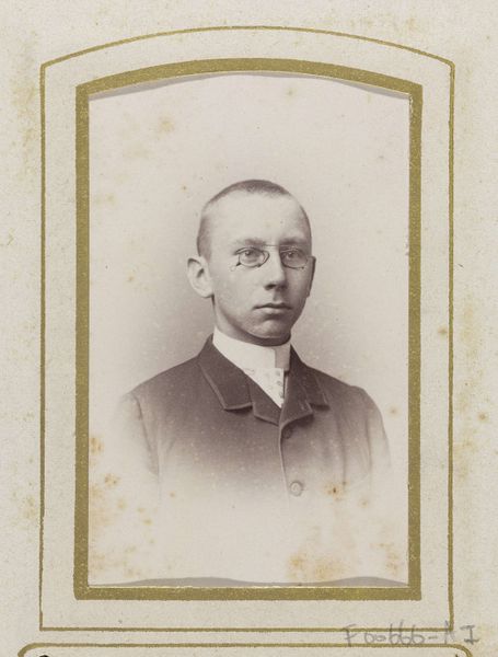 This is a photograph of Professor W. Banning by Johannes Laurens Theodorus Huijsen. The portrait employs a muted palette, dominated by grayscale tones, that creates a contemplative mood. The subject is positioned centrally, and the composition emphasises symmetry and balance. The framing of the head and shoulders, combined with the subject's direct gaze, invites immediate engagement. The interplay of light and shadow subtly models the professor’s face, accentuating the contours of his features and adding depth to the image. The textures of the clothing provide tonal contrast, distinguishing fabric from skin. These formal elements contribute to a sense of reserved dignity. The subdued tones and compositional stillness suggest a connection to early photographic aesthetics, yet the artist also captures a modern sensibility through the sitter's piercing gaze. The formal austerity might reflect a desire to portray intellect and composure. The photograph’s enduring impact relies on the formal choices that capture a sense of the sitter’s essence through the medium's unique capacity for realism.