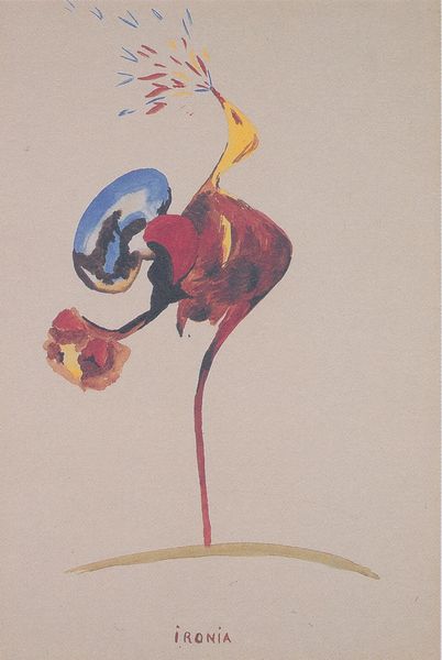 Editor: Here we have "Page from Hagoromo (Feathered Robe)" by Matsubara Naoko, at the Harvard Art Museums. The swirling lines are so dynamic! What do you make of the composition? Curator: The arrangement of lines exhibits a clear formal structure, does it not? Note the interplay of positive and negative space, and how the artist uses color to create depth. The red bar grounds the ethereal quality of the rest of the image. Editor: It's interesting how that grounding element really does change the way I see the piece as a whole! Curator: Indeed. The careful manipulation of visual elements guides our interpretation, demonstrating the power of artistic form in shaping meaning. Editor: I appreciate how a close reading reveals so much about the artist's intent. Thank you! Curator: My pleasure. Such dialogue allows for a deeper understanding of the work’s formal qualities.