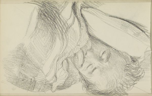 Editor: This is an untitled pencil drawing by Richard Diebenkorn, created sometime between 1955 and 1967. It depicts the side view of a reclining female nude. The sketchiness of the lines gives it a very intimate, almost vulnerable feel. What do you see in this piece? Curator: Beyond the intimate quality you noted, consider the socio-political landscape in which Diebenkorn was working. Post-war America witnessed shifting roles for women, even within domestic settings. Does this rendering, with its somewhat ambiguous and obscured features, perhaps speak to the restricted visibility and agency afforded to women during that period? The loose, almost anxious lines might hint at the underlying tensions. What do you make of the space she occupies? Editor: It feels undefined, almost like a limbo. It's not quite a bed, not quite a landscape… Curator: Exactly. And whose gaze is privileged here? Diebenkorn, as the artist, certainly. But consider, too, how the viewer is positioned to observe. Are we invited into a moment of shared intimacy, or are we voyeurs? How does the ambiguity of the setting influence your interpretation of the power dynamics at play? Editor: I never considered the power dynamics. The setting makes the figure vulnerable but, I suppose, less relatable too? Curator: It's a negotiation, isn't it? This work, in its delicate lines and uncertain setting, offers us a lens through which to examine the complexities of representation, gender, and power in the mid-20th century. By looking closely, we are challenged to confront not just what we see, but also how we see and why. Editor: Thank you. I appreciate your thoughts on how social context complicates my reading of the work.