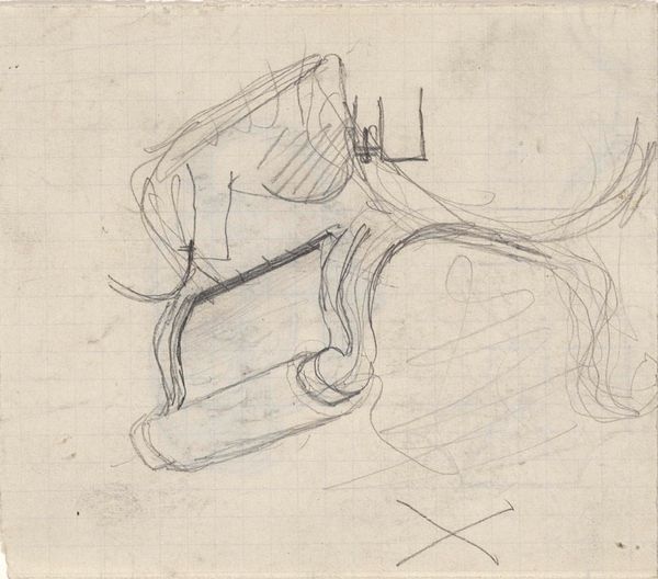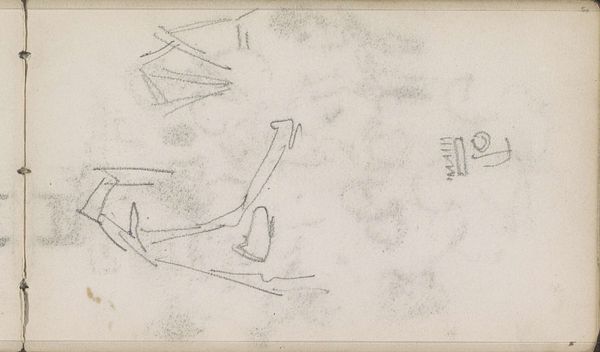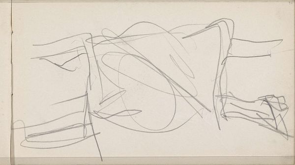 Curator: Here we have "Figuurstudies, mogelijk van vrouwen" or "Figure Studies, Possibly of Women," attributed to Isaac Israels and thought to have been made between 1875 and 1934. Editor: It strikes me as incredibly fleeting, almost like a captured thought vanishing as soon as it appears on the page. A series of quick sketches, full of pentimento and unresolved shapes, creating an interesting balance on a square surface. Curator: Precisely. Notice how the medium – pencil and ink on paper – lends itself perfectly to this sense of immediacy. The lines are raw, energetic. It seems a private glimpse into the artist’s process. And how do these abstracted figures communicate with you? Editor: Beyond a hint of the feminine implied in the title, the iconography is almost non-existent. I find myself trying to decode each curve and stroke – a tilt of the head, a draped fabric maybe, yet ultimately settling in abstraction. There’s an underlying restlessness, I feel, a desire to catch something ephemeral before it escapes. Curator: Indeed, but even in their incomplete state, they suggest so much about the act of seeing and representing. See the way Israels manipulates line weight. The application varies from the almost violently assertive, thick contour to an achingly delicate barely-there line, all sharing space, delineating volume, suggesting depth. What does the collection of symbols signify in terms of form? Editor: These ghostly suggestions also tell a story about womanhood through history. Are these suggestions enough for contemporary audiences? There is the hint of Impressionism in their ethereality, but ultimately it exists outside the boundaries. I imagine some would wonder, ‘why show this piece’? Curator: Perhaps that tension – between recognition and dissolution – is exactly what makes it so compelling. We see the artist wrestling with form, grappling with perception itself, each attempt a layering and building toward something that’s neither fully there, nor absent. Editor: In short, more than a sketch it’s a palimpsest. I now notice several attempts on the figures below, giving new light on its title of possibly women. The pentimento shows the artist has evolved what to portray during its inception. Curator: Yes, indeed. This gives form to feeling as you might describe it.