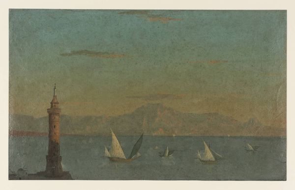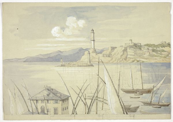 Elizabeth Murray crafted this watercolor titled "Portofino from the Sea, Genoa" with a delicate touch. At first glance, the composition unfolds with the town of Portofino perched atop a gentle slope to the left, balanced by a mountain range towards the right, viewed across an expanse of water with sailing boats. The scene is painted with subtle gradations of muted blues, grays, and whites. Murray’s structural organization of space can be interpreted through semiotic lenses. The town and mountains act as anchoring signifiers of stability and permanence, while the boats, symbols of movement, introduce dynamism. The interplay between horizontal and diagonal lines further structures the visual field, creating a dialogue between the static and the mobile. The artist captures the scene with what appears to be a commitment to realism while also engaging with the Romantic tradition of landscape painting. Notice how the horizon line is set rather low, allowing the sky to dominate the scene, subtly destabilizing traditional perspective. This element, viewed through the lens of poststructuralism, invites us to consider how the painting challenges fixed perspectives. The artwork prompts us to question not just what we see, but how we see, emphasizing that even seemingly straightforward representations are imbued with cultural and personal interpretations.