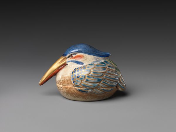 This exquisite bonbonnière, a trinket box, was crafted in the Battersea Enamel Factory in the mid-18th century. The form is immediately striking: a goldfinch, brought to life in vibrant enamel. Note how the artist has captured the essence of the bird through simplified yet expressive shapes, and the beak is silvered to resemble it more closely. The semiotic interplay here is fascinating. The goldfinch, often associated with good luck, becomes a symbol of luxury and refinement when transformed into a container for sweets or small treasures. Consider the interplay between form and function. The hard, polished enamel contrasts with the soft, feathered texture it imitates, creating a tension that challenges our perception. The artist uses colour, shape, and form to playfully blur the boundaries between the natural world and the artificial, highlighting how art can transform everyday objects into potent symbols.