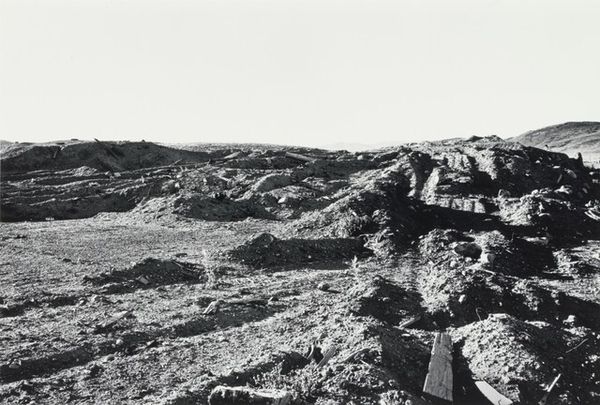 Editor: So, this is Robert Adams' "Clatsop County, Oregon," a photograph taken between 1999 and 2003. It’s stark… monochrome, obviously. I am struck by the way he frames a deforested landscape. How would you interpret Adams’s photograph? Curator: Well, the photograph to me speaks of absences, doesn't it? What we *expect* to see in a landscape – lushness, vibrant greens, a sense of natural abundance – is strikingly missing. The picture presents not just a space, but a commentary, right? And Adams... he's not just passively documenting; he’s asking us, maybe even challenging us, to consider our role in this altering landscape. Editor: That makes sense. There's a definite somber quality, perhaps even a hint of indictment? It avoids romanticizing anything; instead it showcases the unvarnished consequences of industry. Curator: Precisely. Adams refrains from easy sentimentality. What do you think of the composition? Editor: The eye is drawn towards the background with the long views and undulating lines that creates a deep focus. However, in the foreground there's a more shallow depth of field which allows for the eye to have access to the devastation. Curator: Excellent observation! See how he invites you to visually "read" the landscape, urging one to reflect on that contrast between what persists and what is taken, highlighting our complex engagement with the land. You find something beautiful and disturbing at the same time. What would you say? Editor: I agree, the work definitely moved me. It really got me thinking about the ethical implications of how we engage with our planet. Curator: Exactly! And for me, that dialogue is precisely where the value and continued resonance of Adams’s work lie, beyond a pure landscape image. Thanks, that was wonderful!
