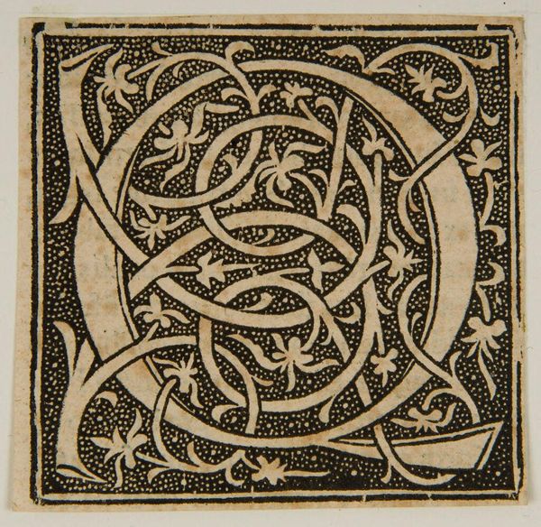 Curator: This is "Initial H," an anonymous work held here at the Harvard Art Museums. The woodcut shows a decorative letter "H" entwined with foliage and birds. Editor: Immediately, I'm struck by the stark contrast and graphic nature of the image. It feels both ancient and somehow very modern in its simplicity. Curator: The peacock is quite prominent. In Christian iconography, it can represent resurrection, renewal, and even immortality, given the myth that its flesh doesn't decay. Editor: Interesting! I see it more as a symbol of vanity, perhaps even oppression, especially in the context of illuminated manuscripts created within systems of power. Who got to be illuminated? Curator: It could represent a multitude of things, and perhaps those dualities were intentionally embedded. Editor: Perhaps. What resonates for me is how even something seemingly decorative carries encoded messages about who holds privilege and what narratives are valorized. Curator: Right, this piece showcases how images can transcend time, carrying complex and sometimes conflicting cultural weight across centuries. Editor: Ultimately, art is always a conversation, even when the artist is unknown.