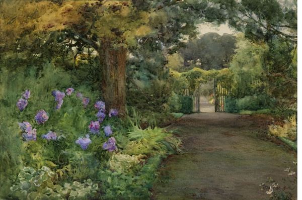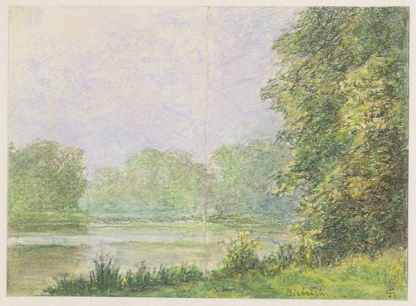 Curator: Here we have "Park in Strážky" by Ladislav Mednyánszky, likely painted sometime between 1870 and 1880. It's primarily watercolor, with possibly some oil painting as well, depicting a serene landscape scene. Editor: It feels… unfinished, almost. Like a memory half-remembered. The colors are muted, the details soft. It’s a hazy, dreamy kind of place. Curator: That hazy quality speaks to Mednyánszky’s impressionistic tendencies and his interest in "plein-air" painting, capturing the fleeting effects of light and atmosphere directly from nature. He was moving away from academic rigidity. Editor: Right. The light *is* lovely. Notice how it filters through the trees, creating that sense of depth, drawing you into the composition. And the composition itself—a kind of natural proscenium arch of trees framing a glade? Curator: Precisely! It invites contemplation, doesn’t it? During this period, gardens and parks were becoming increasingly important as public spaces, offering refuge from urban life. I wonder if he’s subtly commenting on that. Editor: Maybe. Or maybe he just liked painting trees. There's something inherently democratic in that. Landscape painting opens up art, traditionally a sphere for the wealthy, to all. Like this one. Curator: I appreciate that reading. The accessibility of landscape art allowed artists to explore their own sense of place and identity. Mednyánszky, with his somewhat nomadic life, perhaps sought a sense of belonging through capturing these tranquil settings. Editor: He captures something universal, even if unintended. Looking at this now, I want to curl up in the glade, listen to the buzzing of bees and lose myself in reverie. Curator: A sentiment, I suspect, Mednyánszky himself would have appreciated. It seems that this painting succeeds as both an interpretation of an area, and a timeless sanctuary for reflection.