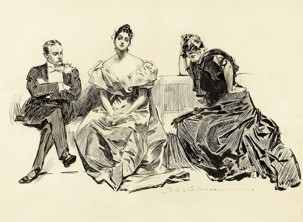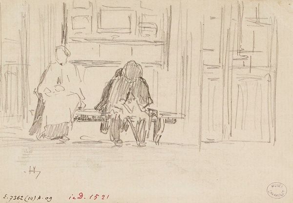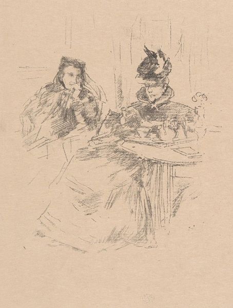 James Abbott McNeill Whistler created this sketch, called “The Sisters,” with graphite. In the late 19th century, women’s lives were being renegotiated in the face of the suffragette movement, and there was more visibility in women’s relationships. Here, we have two women, presumably sisters, in a domestic space. One sister is standing while the other reclines. The intimacy of their interaction is palpable despite the distance. The standing figure seems to be looking down at the reclining woman. The loose rendering of the sketch softens the figures and provides an ephemeral quality. The use of the title "The Sisters" suggests a deep connection, offering an intimate glimpse into their world. Whistler was known for capturing subtle emotions, and here the sketch resonates with a quiet intensity, inviting the viewer to contemplate the complexities of female relationships within the confines of their time. It is a moving piece, capturing a fleeting moment of connection.