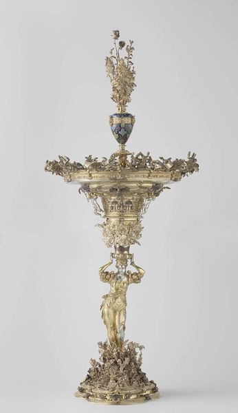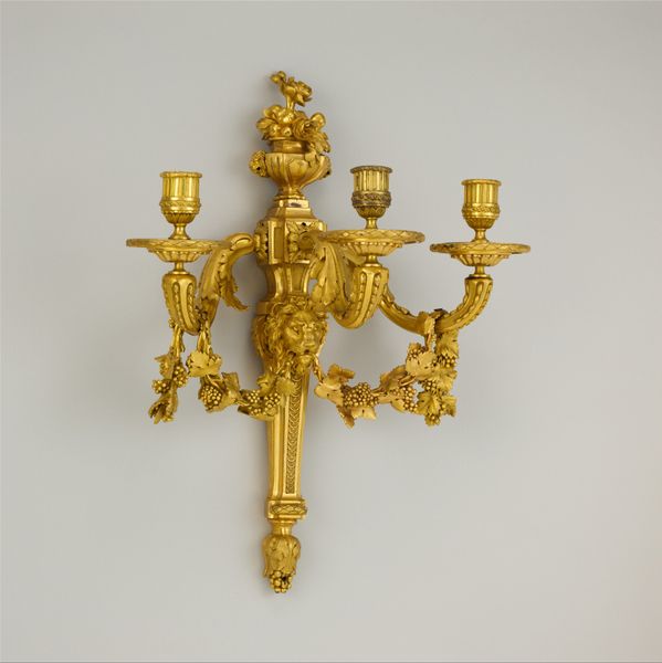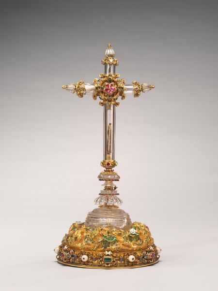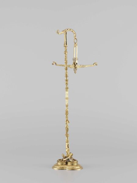Editor: This is "Cross with Corpus," made around 1765-1766 by Leandro Gagliardi. It's made of bronze, gold, and what looks like some other metal. It has an undeniably opulent feel. How do you approach a piece like this? Curator: From a materialist perspective, the combination of bronze and gold is key. The economic disparity inherent in the preciousness of gold versus the industrial applications of bronze speak volumes about the patronage and intended audience. What kind of labor practices were involved in mining, smelting, and manipulating these materials into this form? Editor: That’s fascinating, I never considered the implications of combining these materials. It just looked "gold" to me. I guess I didn't consider where those materials came from. How did those methods impact artistic production itself? Curator: Exactly. The Baroque period, reflected in the work’s style, demanded extravagance, often at the expense of those producing the raw materials and crafting the final object. Each flourish, each embellishment on this cross, is a testament to both skill and exploitation. How do we reconcile the beauty of the craftsmanship with the realities of its production? Editor: So it becomes not just a religious object but also evidence of social stratification at the time. Thinking about the gold especially, I wonder what percentage of the population would have even had any exposure to such precious materials in that era. Curator: Precisely. Its materiality is inextricably linked to social power and economic control. Can we truly separate the aesthetic experience from the underlying power dynamics that facilitated its creation? Editor: I think that’s given me a much deeper appreciation for how to really analyze the layers behind the aesthetic. Curator: And for recognizing art's complex engagement with its production.