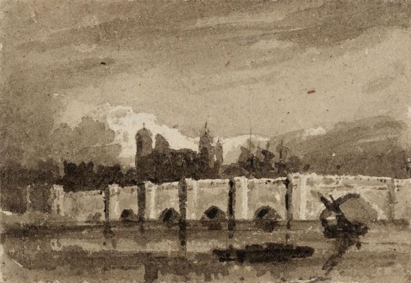 Editor: Here we have Denman Waldo Ross's "View of Canal and Bridges." It's a small, dreamy painting, almost a sketch. What's particularly striking to you about it? Curator: It evokes the grand tradition of Venetian vedute, but with an intimate, almost Impressionistic touch. Ross was working during a period of intense debate about the role of art in society. Does this painting seem to embrace or reject academic conventions? Editor: I see both. It's representational, but also quite loose. Curator: Precisely. The sketch-like quality democratizes the image. It’s no longer just for the elite, but accessible to a broader public through its informality. Editor: That's a great point; it makes the scene feel more immediate. Curator: Indeed. Ross uses familiar imagery to engage with contemporary discussions about art and its place in a changing world. Editor: I hadn't considered that. I'll definitely look at this piece differently now!