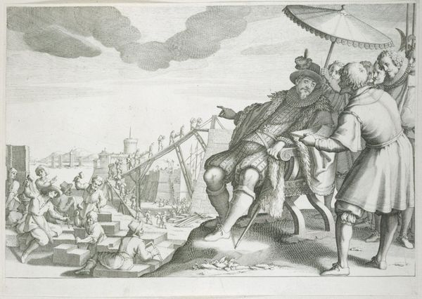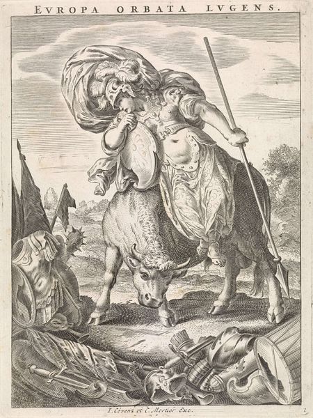 Editor: Here we have "Calaïs en Zetes helpen Phineus," a 1655 engraving housed in the Rijksmuseum. The strong lines and mythological subject matter give it a grand, almost theatrical feel. What do you see in this piece that expands on its historical or cultural importance? Curator: This print reflects the enduring appeal of classical mythology in the Baroque era, specifically Valerius Flaccus's Argonautica, published during the rise of European colonialism and scientific revolutions. The depiction of winged figures aiding Phineus highlights the era's interest in divine intervention and heroism, while also possibly reflecting political and social hierarchies of the time. How do the choices of the artist here reflect what they considered virtues or ideals for the audience? Editor: It is interesting to consider ideals… Their assistance could portray values like courage or divine assistance, especially within the political landscape of the time. I am wondering if representing them as beautiful almost angelic could also suggest an element of control being exerted over Phineus? Curator: Absolutely. The classical stories served didactic purposes; artists would use them to talk about morality and justice within their present socio-political context. Also, the distribution of prints allowed a broader audience to interpret the messages embedded within, reflecting or reinforcing dominant ideologies. Do you see any hints as to the kind of audience this print might have been intended for? Editor: Knowing it would have been relatively accessible due to being a print… I think this piece shows how even mass produced art engages in larger cultural conversations that reinforce dominant ideas but leaves room for discourse. Thank you! Curator: Indeed, thinking of the piece as part of a wider public debate on values really deepens how one engages with its formal elements.