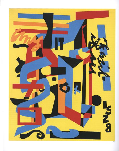 Curator: Looking at Andre Lanskoy's "Blue Composition," I am struck by the vibrancy of the colours against that deep background. Editor: The way those shapes jostle feels very active and urban. Is that a typical direction for Lanskoy? Curator: He developed a style of geometric abstraction in his painting and printing. Though the date is unspecified, he tended toward non-representational compositions later in his career. Let’s think about the role of the acrylic medium here, allowing these strong fields of unmodulated color, and how it would differ if executed in oil. Editor: That stark quality reinforces a sense of immediacy. I imagine it affected the artistic milieu of the time. Acrylics, emerging from industrial applications, offered a new, almost manufactured purity of colour to artists breaking from tradition. What can we say about the piece's place in the institutions of its time? Curator: That's astute. Geometric abstraction itself gained prominence after World War I as artists sought a universal visual language beyond national identities and narratives. This piece speaks to an international desire for a clean, clear visual vocabulary divorced from past conflicts, and speaks to post-war boom in the consumption of art, of geometric abstraction. Galleries readily embraced this aesthetic. Editor: This resonates with the rejection of tradition, with this newfound, almost utopian faith in simplified forms after all the disruptions, horrors, and traumas experienced through the world wars. And that proliferation you mentioned implies this work had a democratizing influence, in contrast with exclusive gallery models... Curator: Absolutely. In its materials and motifs, it participates in a wider project of transforming visual culture—and through its wide proliferation and relative affordability of the material, helps transform its modes of reception. Editor: The tension of that legacy continues today; the use of modern materials coupled with its mass audience suggests, on some levels, the rejection of an "establishment", while simultaneously finding validation through this proliferation in establishments, and popular consciousness. Curator: Precisely. Thank you, this dialogue helps focus the art of its process, while locating it to a complex context! Editor: And yours brings focus on its effect, where the piece holds value across time and space!